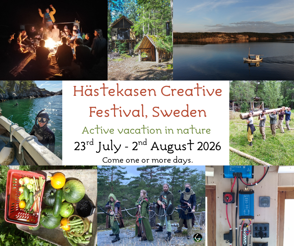 We start with a medieval role playing game (LARP) and finish of with freediving days. There will also be a survival like hide and seek sleep out in nature event. Lots of self made music, fires and celebration. There will be canoe and water activities. Berry and fruit picking and food making. And a full moon. Workshops in certain skills, talking circles and personal development.